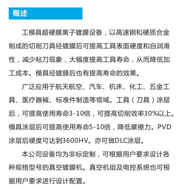 您的位置:首頁(yè) > 產(chǎn)品中心 > 真空鍍膜設(shè)備耗材 > 工模具超硬膜真空鍍膜設(shè)備